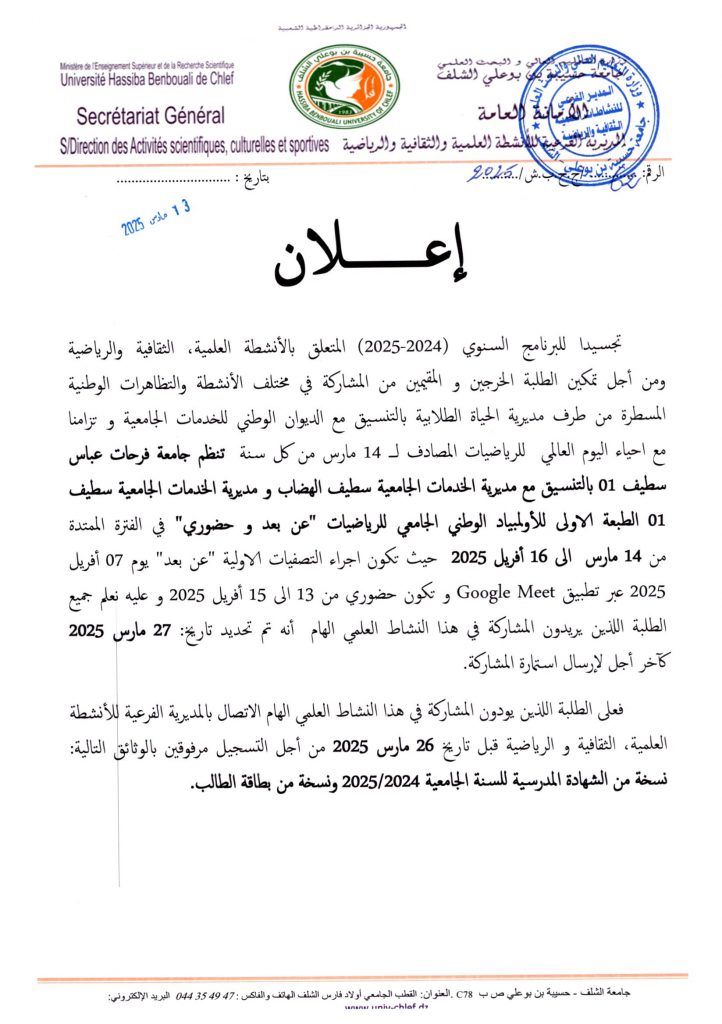 الطبعة الثانية للصالون الوطني للابتكار في خدمة التنمية المستدامةPar zouatenia mhamed / 16/03/2025 [divider] الطبعة الثانية للصالون الوطني للابتكار في خدمة التنمية المستدامة [wp-svg-icons icon= »file-pdf » wrap= »i » size= »16pt » color= »#FF0000″]