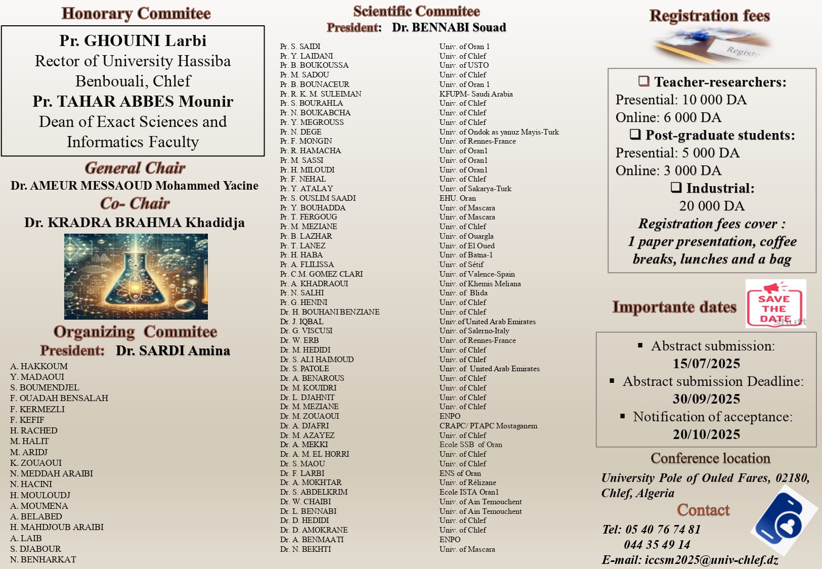 Materials Design and their applications (ICCSM2025) HYBRID in Chlef, Algeria